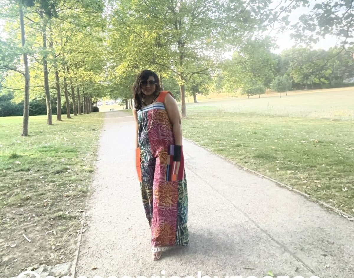 This Adire jumpsuit is a unique blend of traditional Nigerian textile artistry and contemporary fashion.